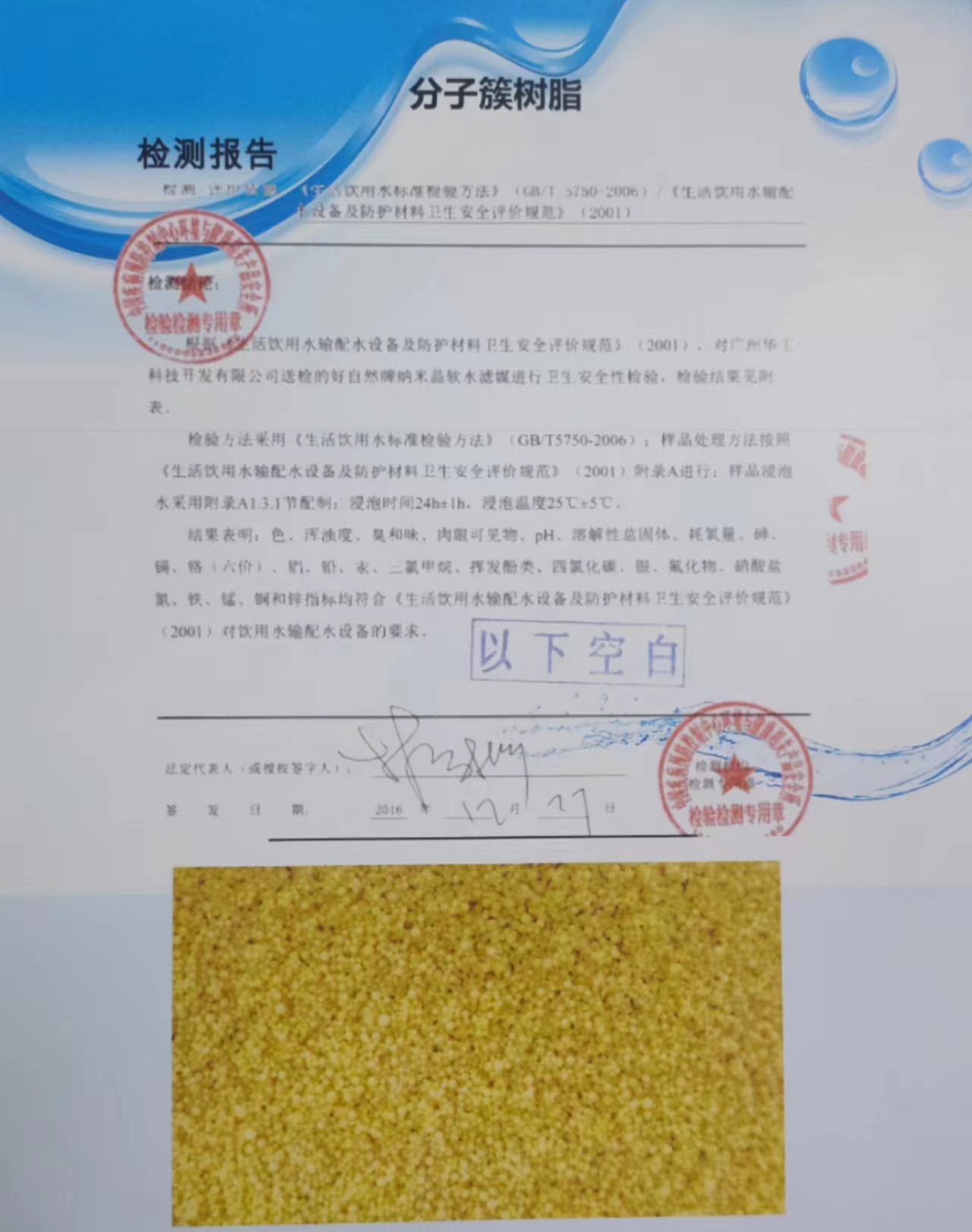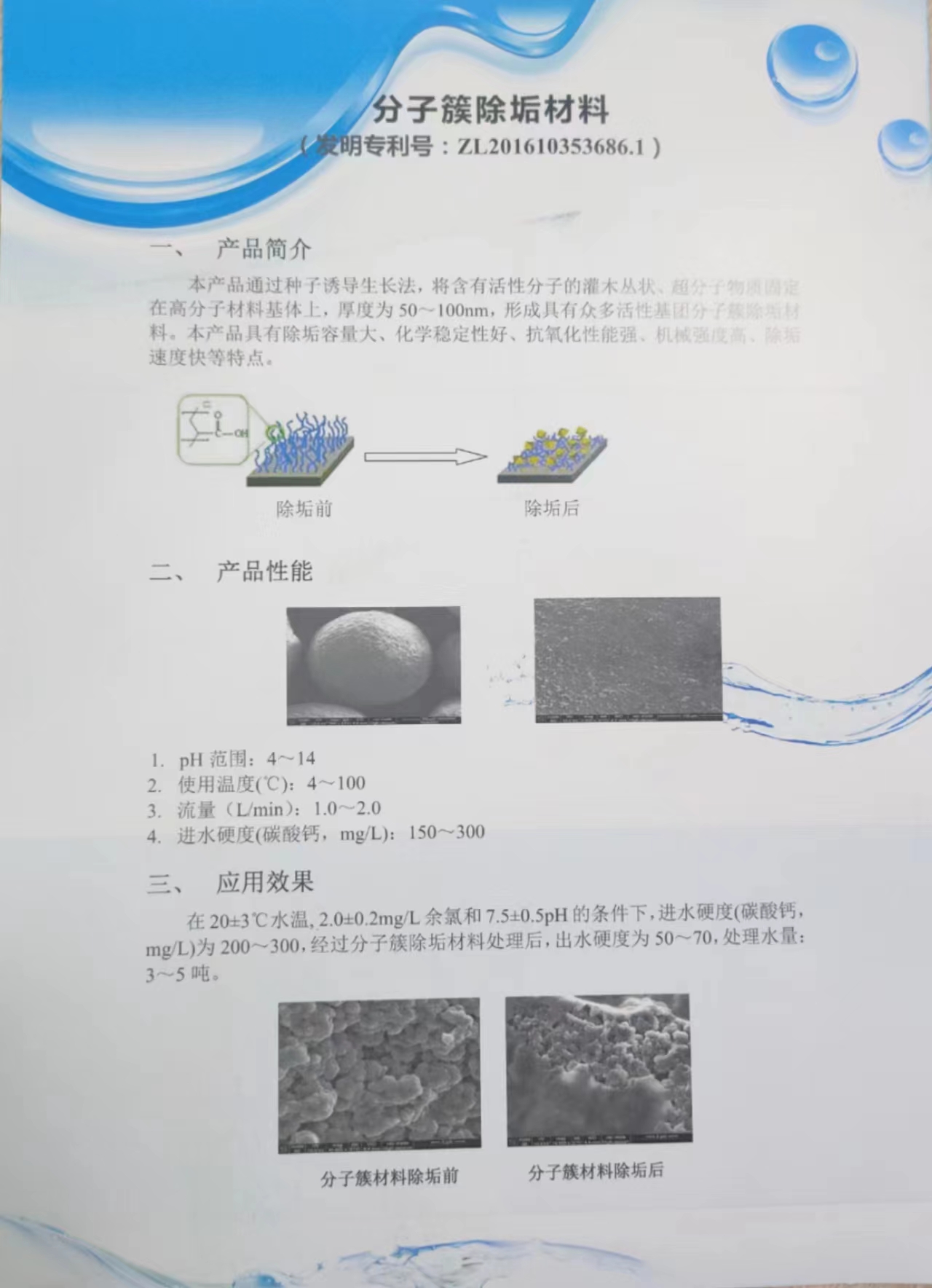 (2) 具有极好的阻垢作用、吸附性能,不仅可以吸附钙、镁离子,同时干扰碳酸钙、碳酸镁等水垢的晶体形成通过除垢和阻垢的双重方式进行高碱、高硬度的水质净化。
